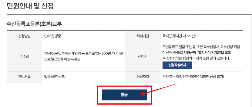 방문발급 | 창구발급: 400원 | 무인발급기: 200원 |