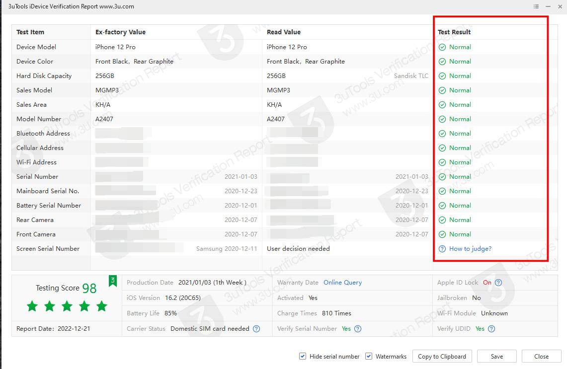 보통 중고판매 전문점에서는 이 프로그램으로 전체 검사를 할테지만 혹시 안하는 곳이 있다면 이렇게 확인하시면 되겠습니다. 아쉬운 점은 디스플레이나 카메라 렌즈 교체등은 쉽게 확인이 어려운 것이 단점입니다.