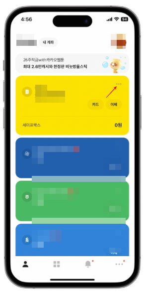 카카오뱅크를 시작하시면 내 카카오뱅크 계좌를 선택합니다. 선택한 계좌에서 우측상단의 톱니바퀴 관리 버튼으로 설정에 들어갑니다.