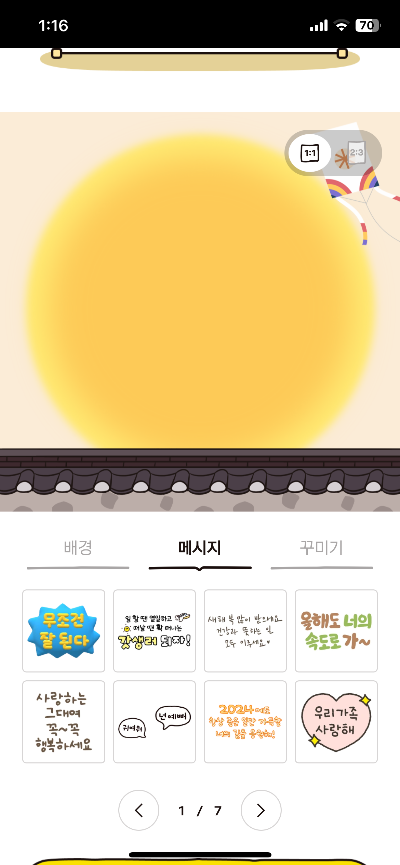 4. 배경과 메시지, 꾸미기는 어렵게 만드는 것이 아니라 원하는 문구와 이미지를 선택해서 크기와 위치 조절이 가능합니다.