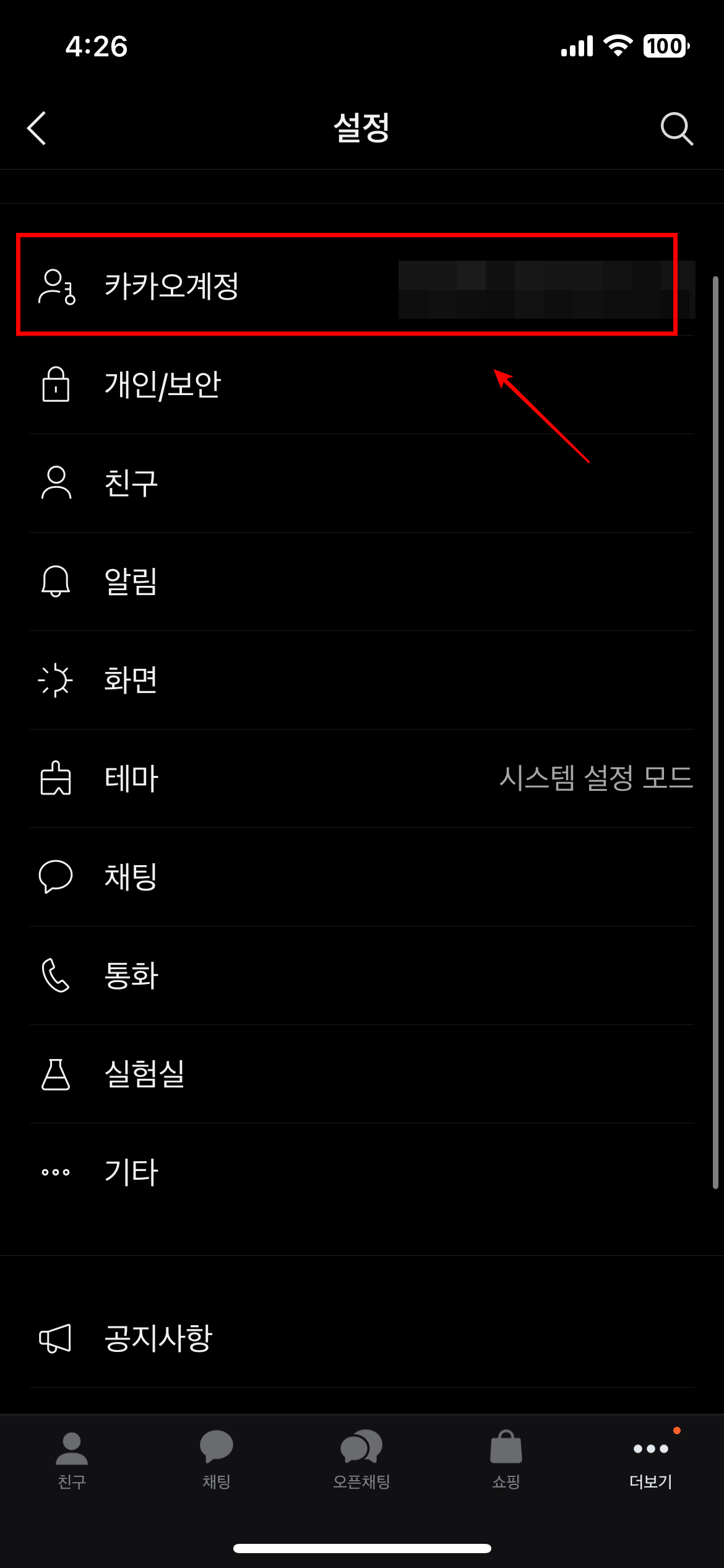 카카오톡에서 하단더보기와 우상단 톱니바퀴로 들어가서 카카오톡 계정설정으로 들어갑니다. 만약 카카오계정이 없다면 계정을 하나 만들어서 관리하는 것을 추천 드립니다.