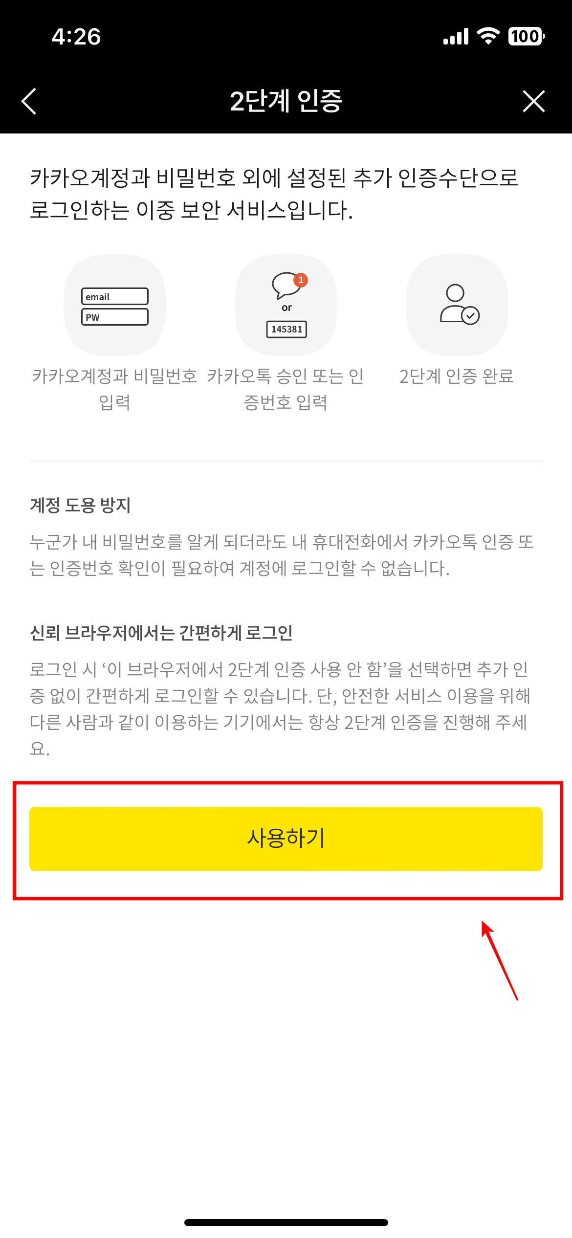 카카오톡 로그인 2차 인증 설정방법