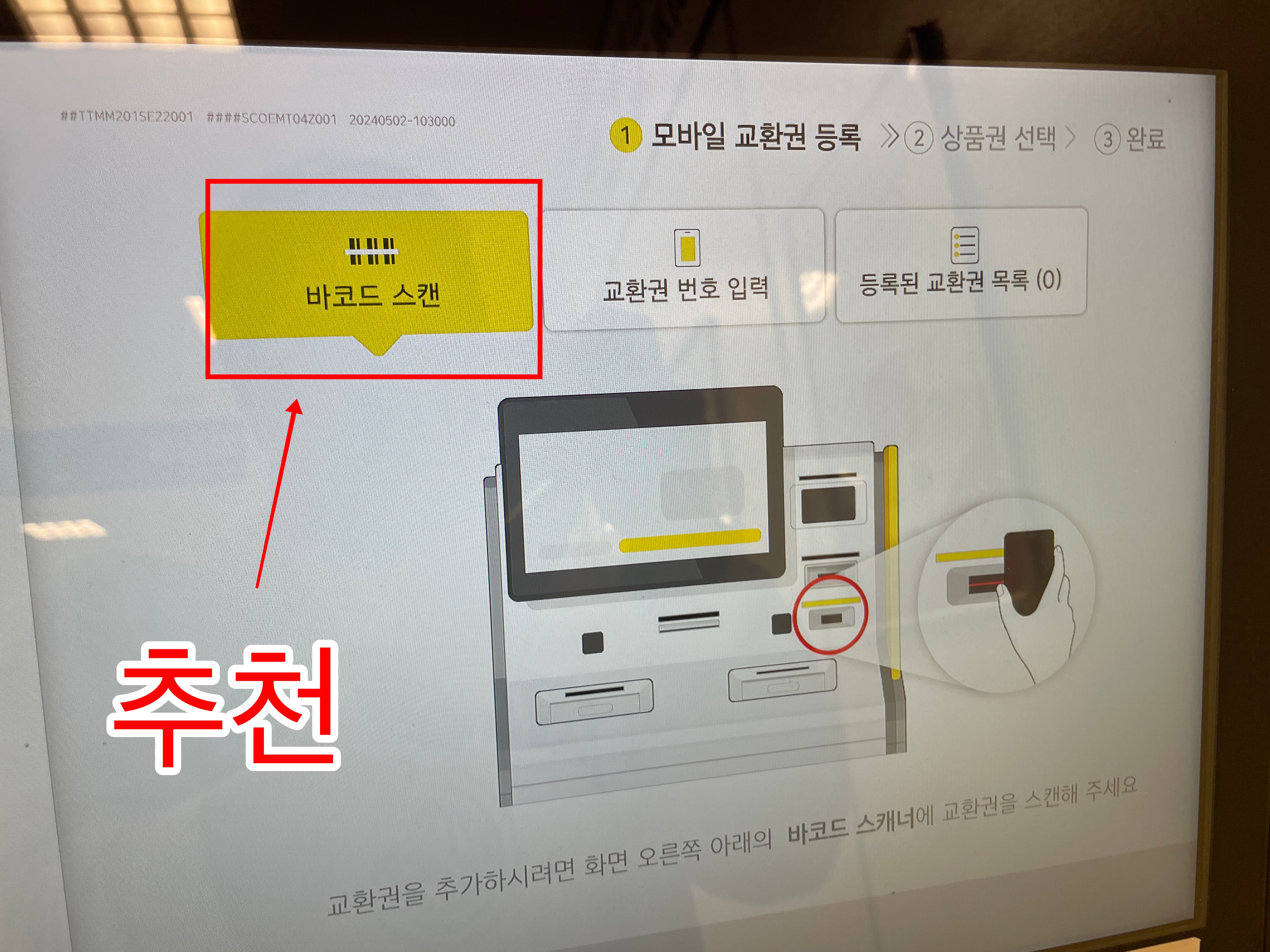 ③ 바코드 스캔, 교환권 번호 입력 두가지 방법이 있는데 기본적으로 간단한 바코드 스캔으로 하는 것을 추천 드립니다.