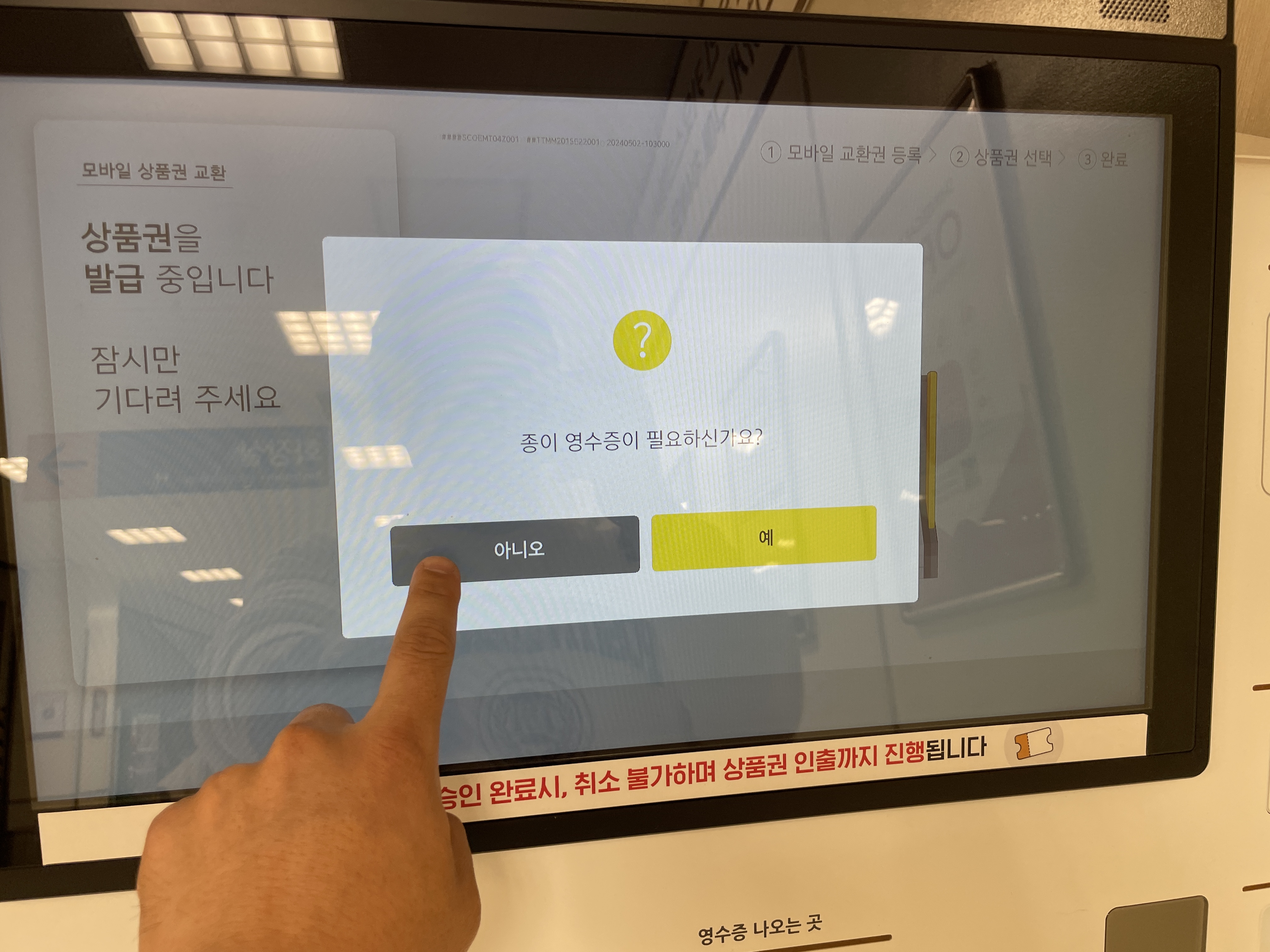⑦ 종이 영수증이 필요하는 여부를 확인합니다.