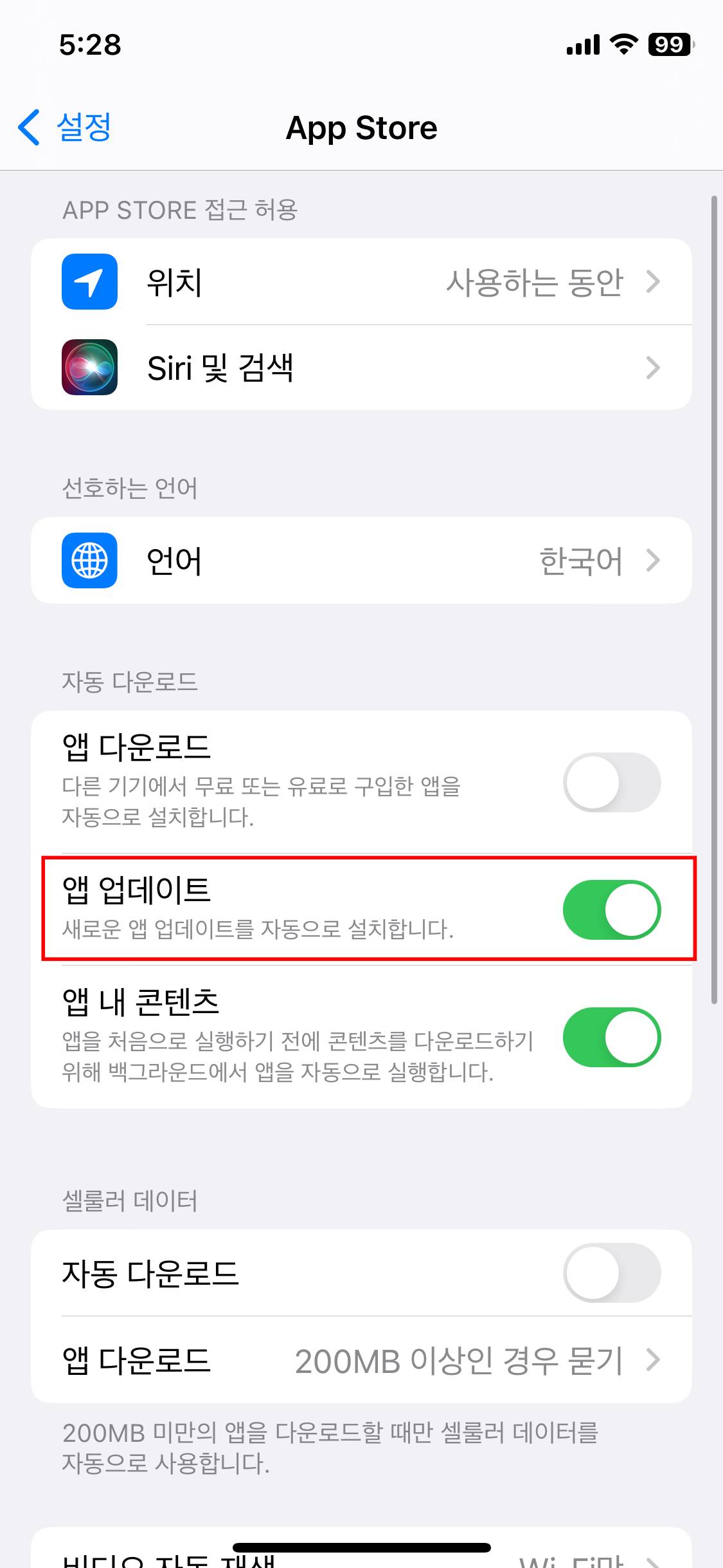 1) 아이폰: 설정 - App Store - 앱 업데이트