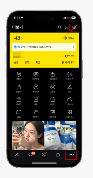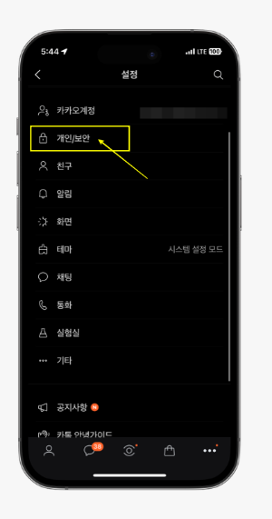 1. 아래쪽 ··· 점 세개를 누르고 우측 상단 톱니바퀴로 설정에 들어갑니다.2. 개인/보안 으로 접속합니다.