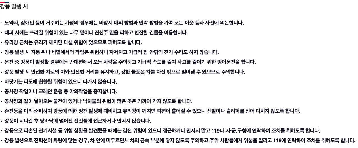 태풍 강풍 발생시 준비 및 발생 주의사항