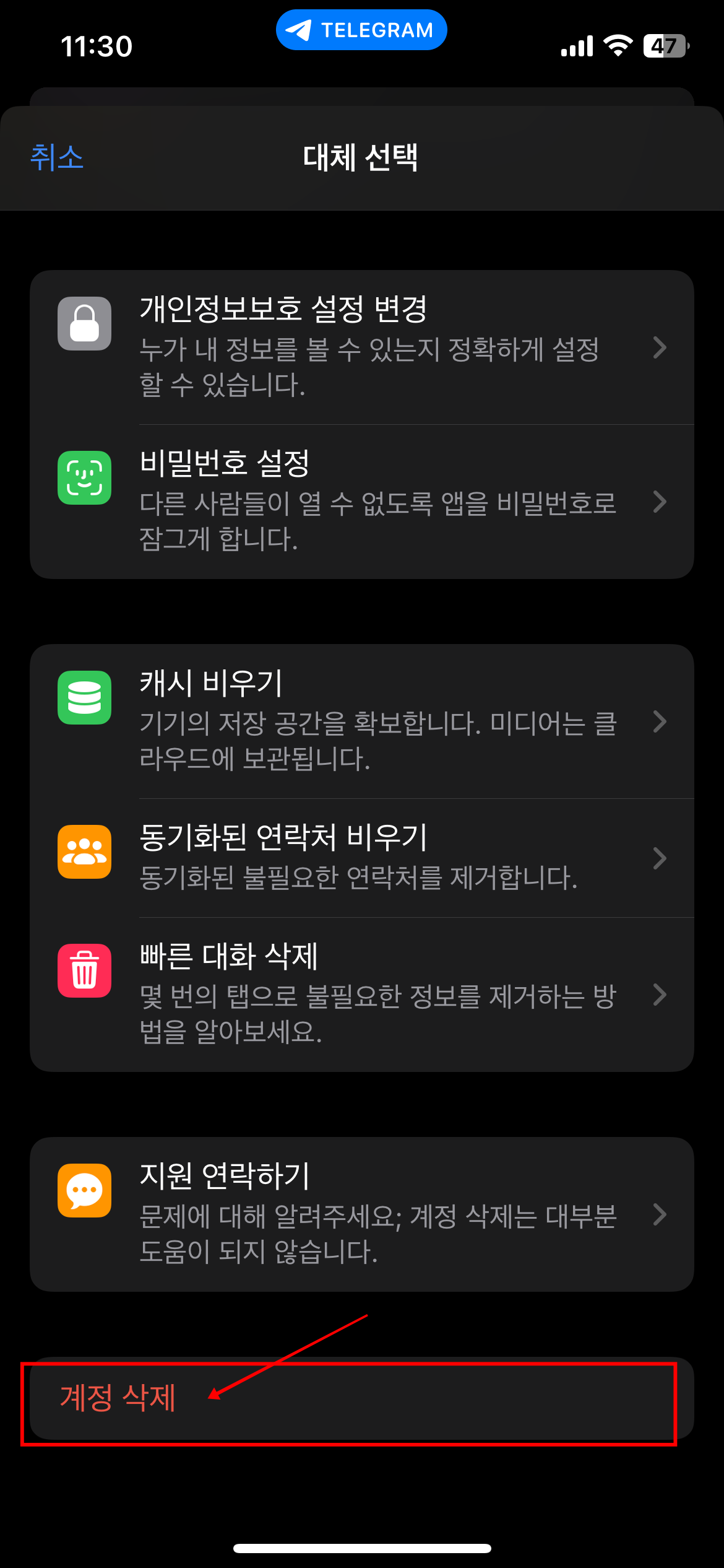 2. 텔레그램 어플 내 자동 수동 탈퇴방법