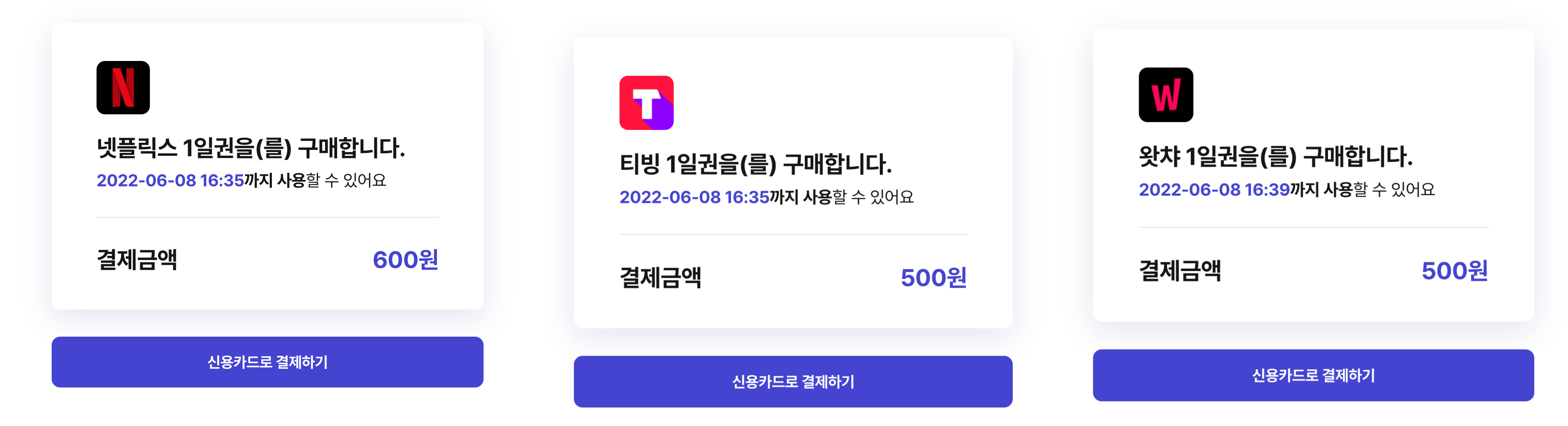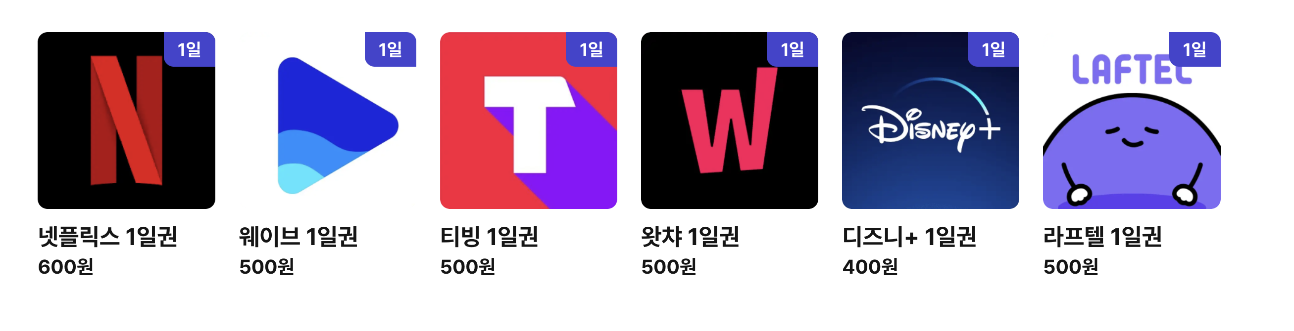 요금을 살펴보자면 넷플릭스는 600원, 웨이브, 티빙, 왓챠, 라프텔은 500원, 디즈니플러스는 400원으로 하루 이용한다고 생각하면 부담없는 가격에 서비스를 제공하고 있습니다. 이러면 안정적인 서비스를 하루만 이용하는데 부담이 없겠네요. 1일 이용권을 30일로 생각한다면 18,000원의 금액으로 프리미엄이 17,000원임을 생각한다면 더 내는거지만 우리는 하루만 이용할꺼니 1일 이용권 600원은 꽤나 합리적인 금액이 아닐까요?