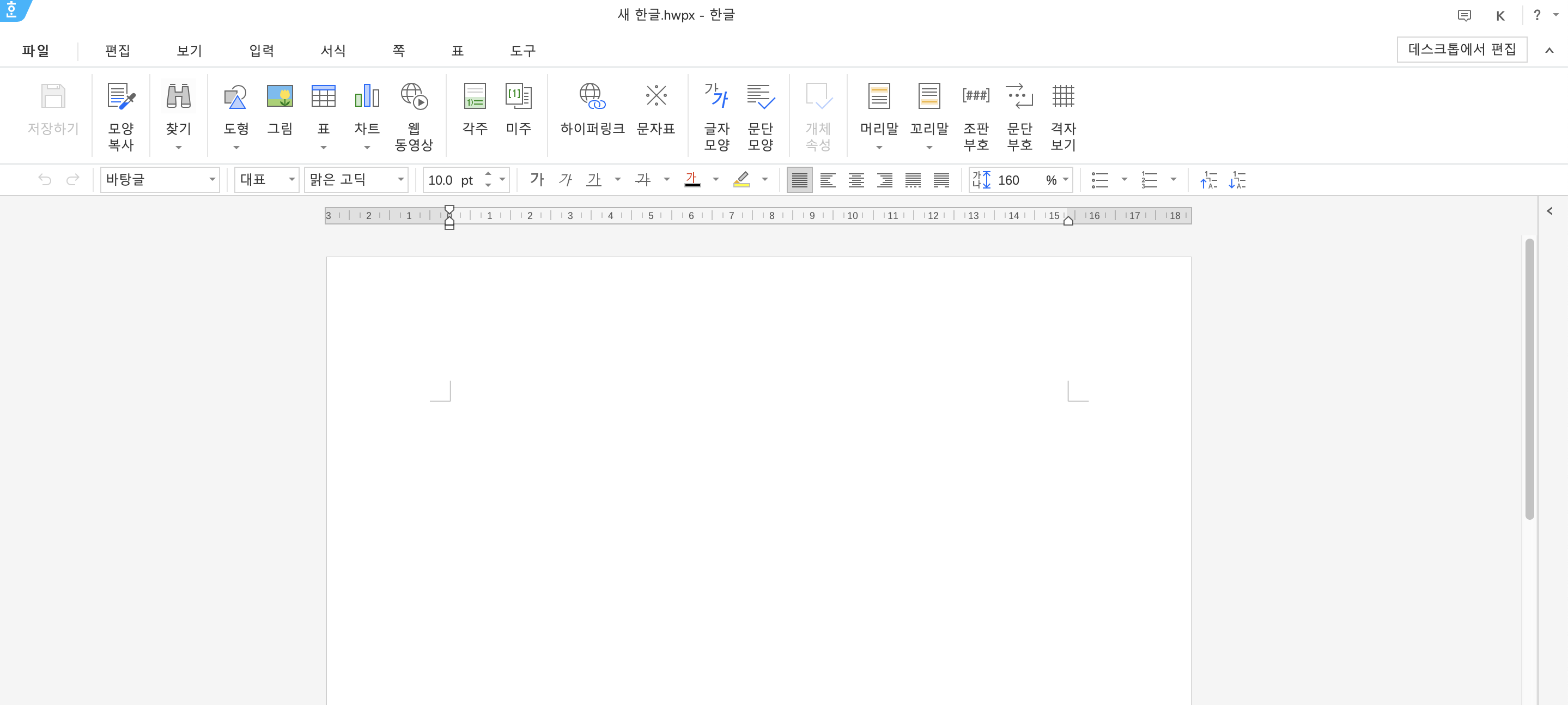 4. 문서 편집화면을 보면 최신 한글프로그램과 동일하게 사용이 가능합니다. 무료로 간편하게 이용할 수 있습니다.