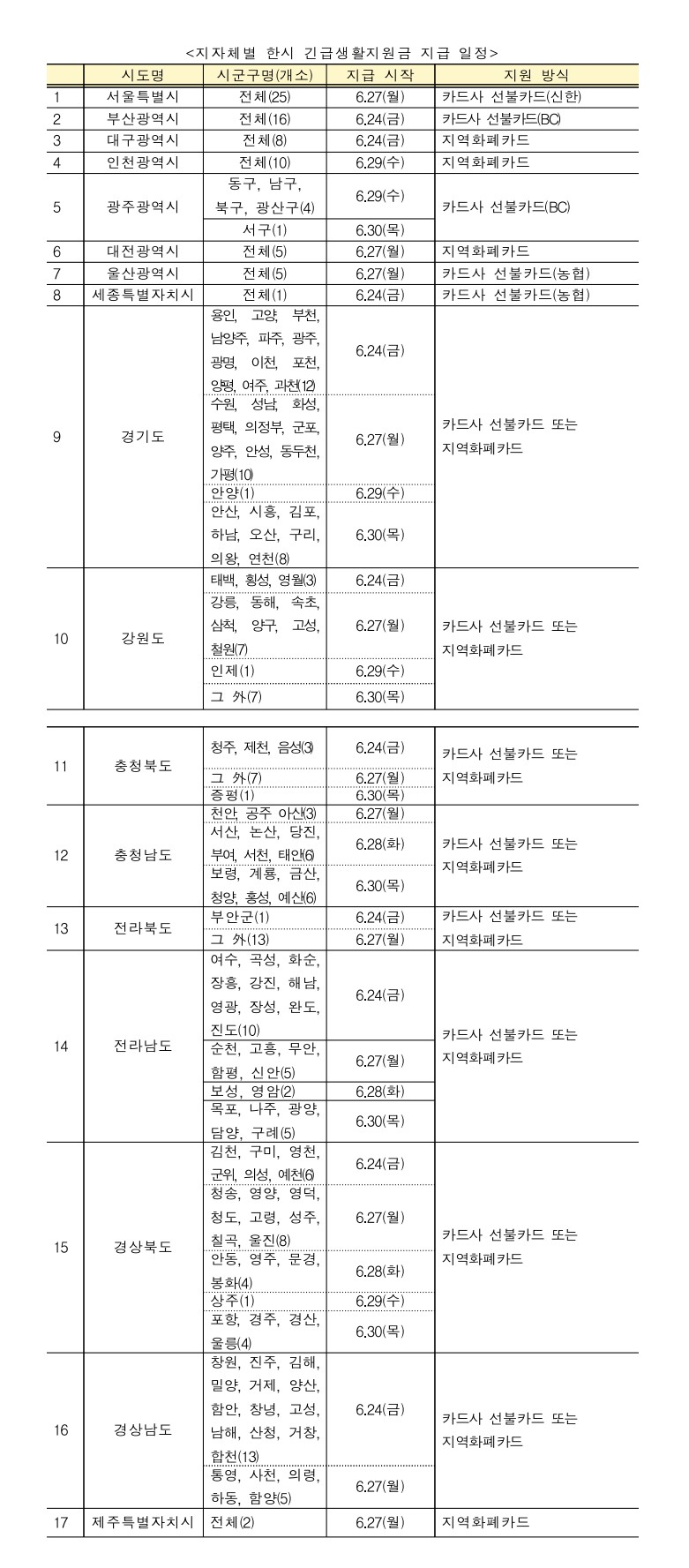 신청은 24일부터 시작이 되지만 지급은 지자체마다 다를 수 있습니다.