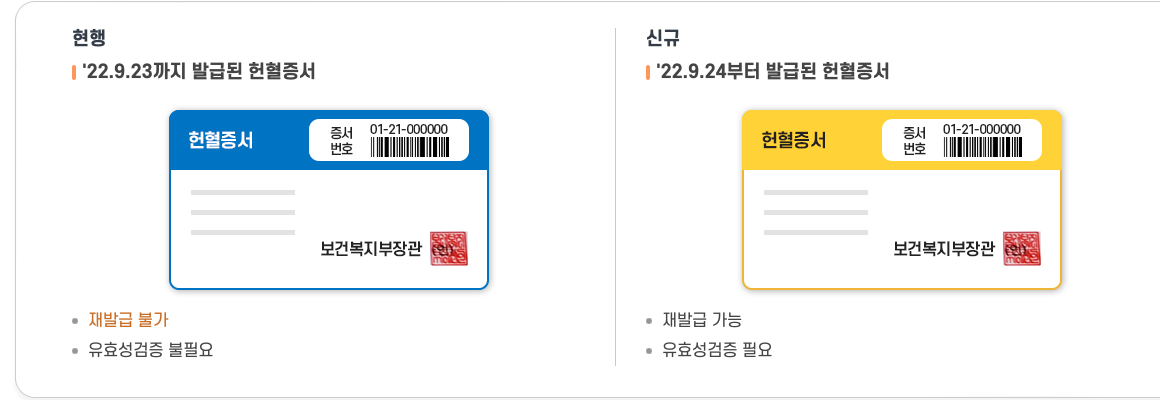 - 2022년 9월 24일 이전 파란색 헌혈증