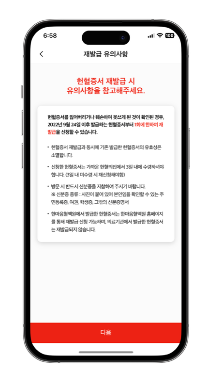재발급 가능한 헌혈증 기준: 2022년 9월 24일 부터