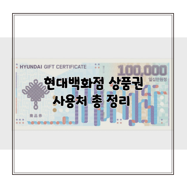 백화점 상품권은 선물 순위에 항상 세 손가락 안에 들어가는 물품입니다. 그냥 현금을 드리는 것 보다 조금은 준비한 모양으로 현대백화점 상품권을 많이들 선물을 하시는데요. 백화점 상품권이 딱 백화점에서만 사용하는 것이 아니라 다른 곳에서도 사용이 가능한데 모르시는 분들이 많은 거 같아서 다른 사용처는 어디가 있는지 정리해서 알려드리겠습니다.