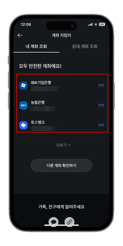 만약 내 계좌가 도용이 되게 되면 계좌가 아예 정지가 될 수 있으니 꼭 한번씩 확인해 보시길 바랍니다.