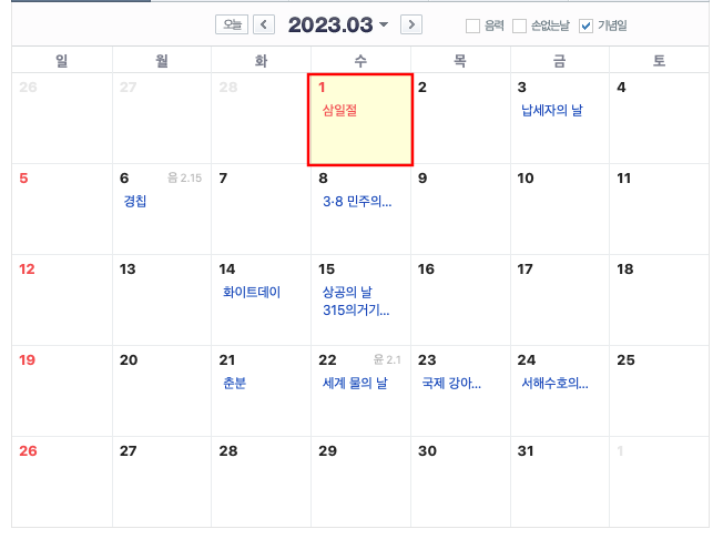 3월 공휴일