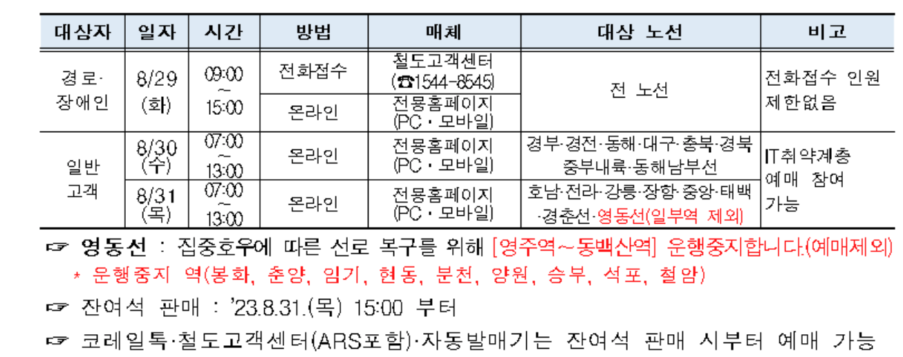 2023년 추석 기차표 예매 일정