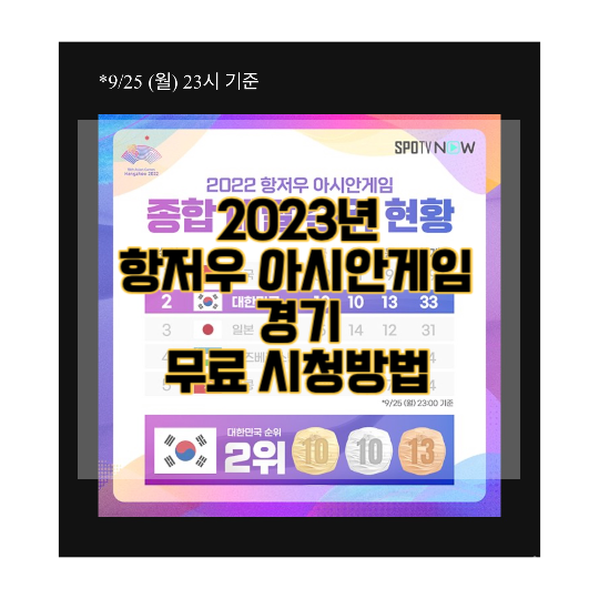 2023년 항저우 아시안게임 경기 경기 무료 시청방법
