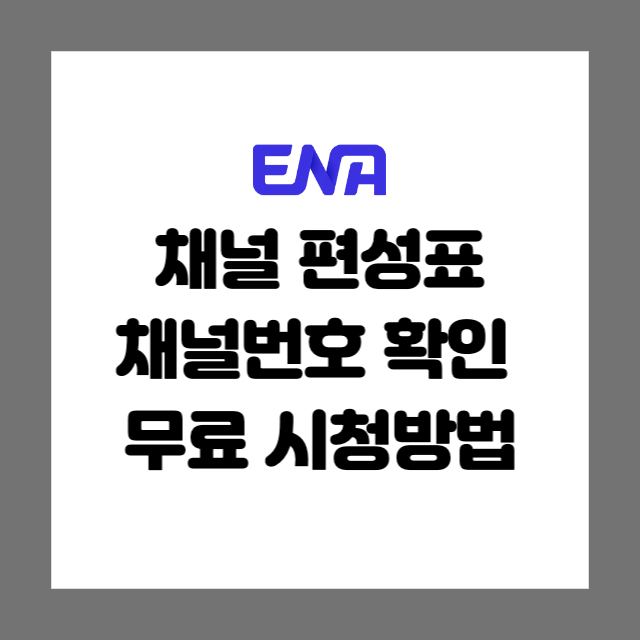 ENA 채널은 우리가 많이 사용하는 채널이 아니였기 때문에 채널번호가 어떤건지 모르는 경우가 있습니다. IPTV, 위성방송, 케이블에 따라 번호가 다릅니다. 아래 표에 정리를 해두었습니다. 참고하셔서 내가 이용하는 방송은 어떤건지 확인하시고 채널번호를 확인하시길 바랍니다.