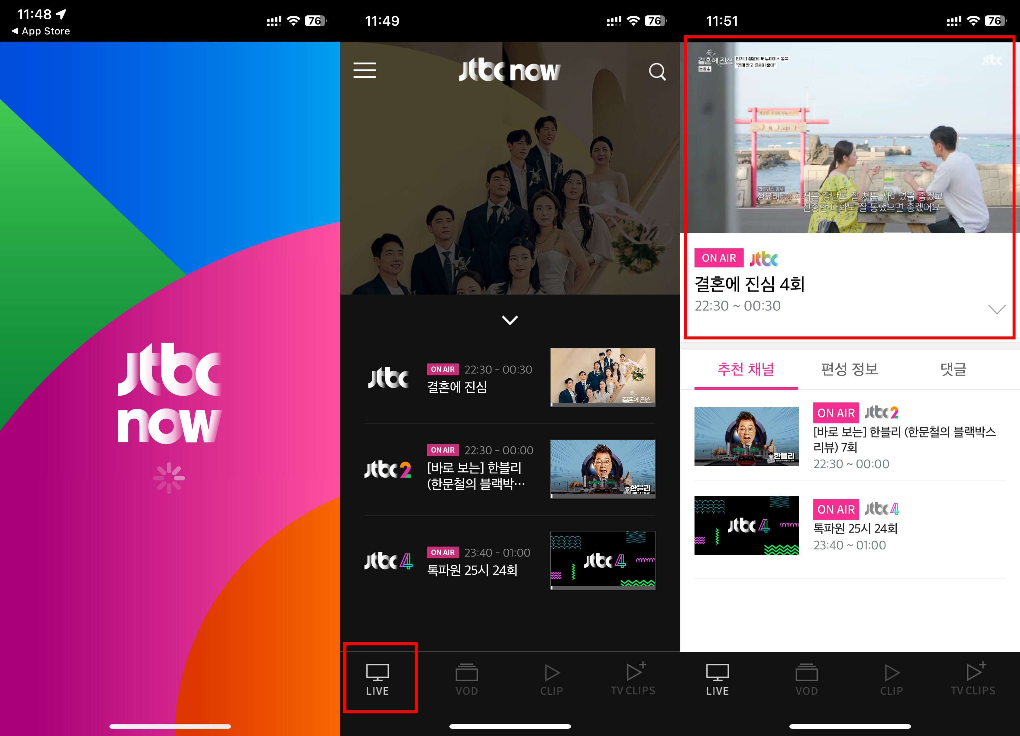 JTBC 온에어 무료 시청방법 (모바일)