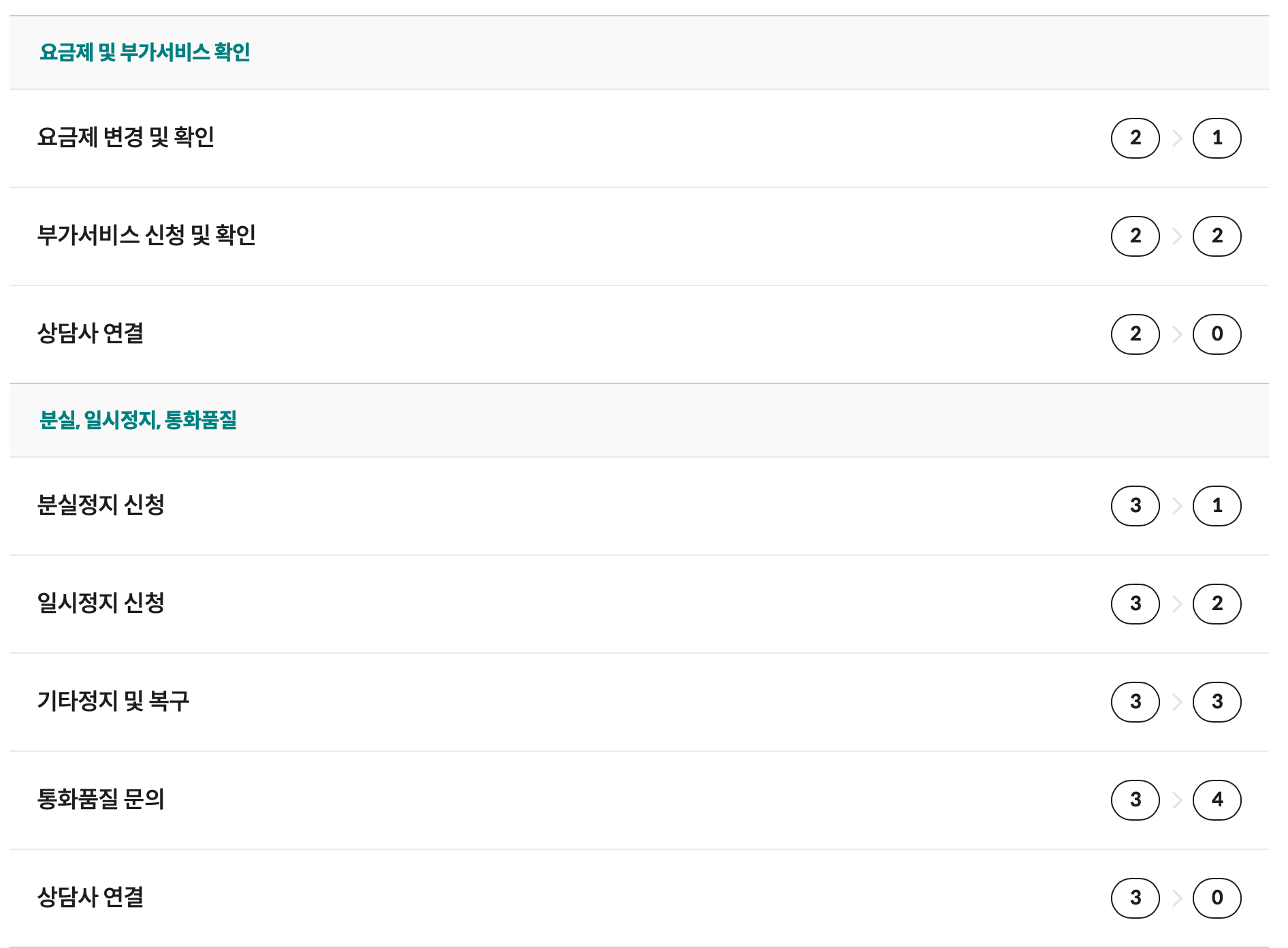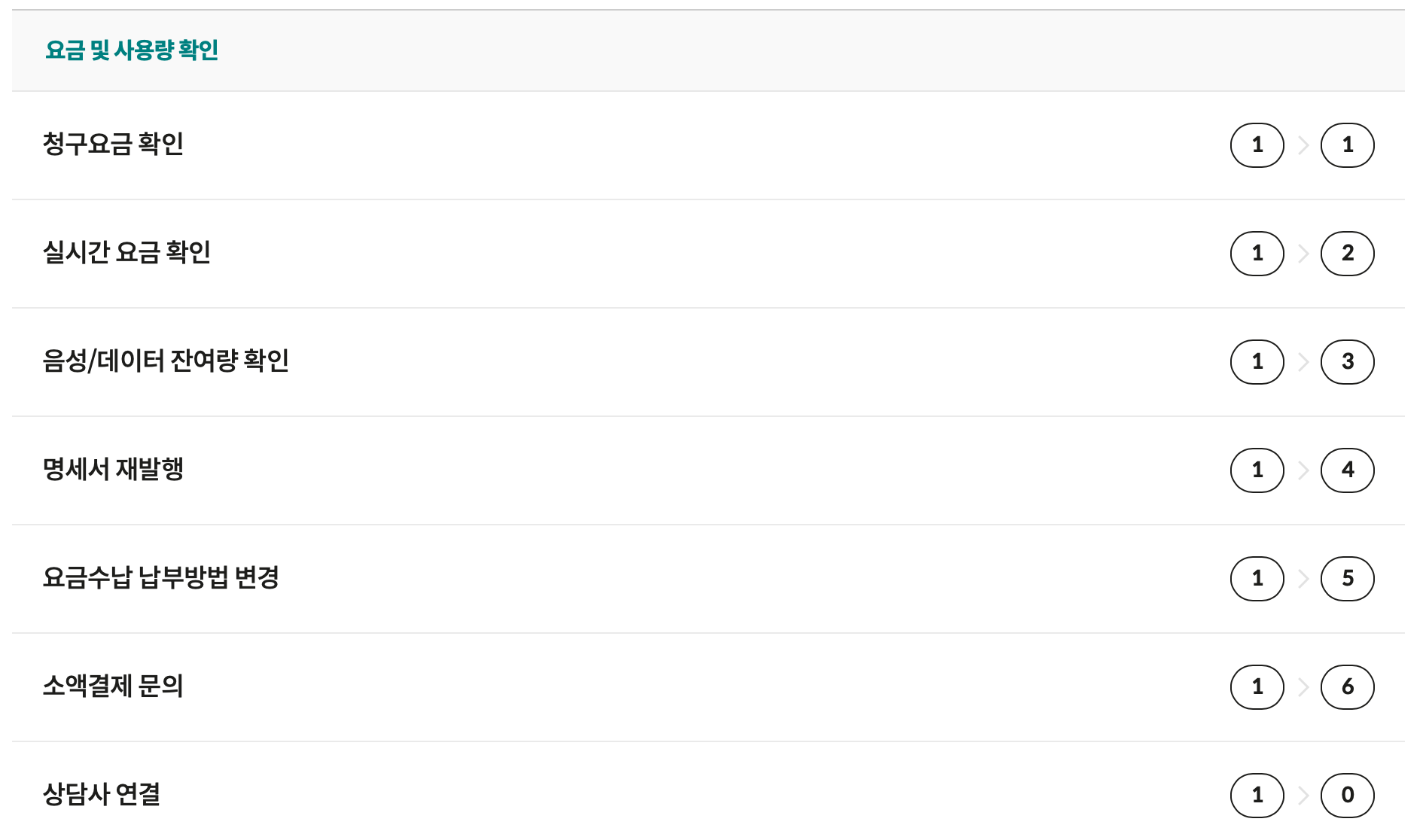 ARS 메뉴로 요금 및 부가서비스 가입과 해지 관련 단축 번호는 아래와 같습니다.