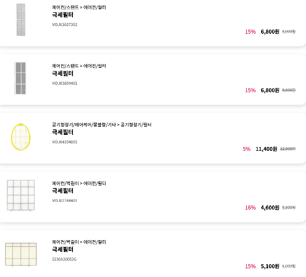 LG에어컨 필터 종류