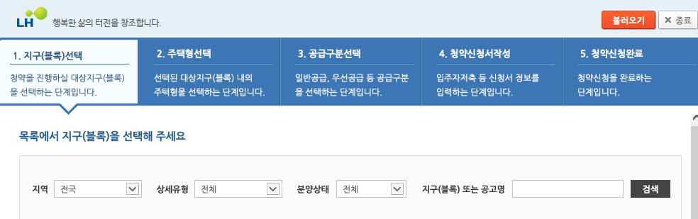 신청방법은 지구를 선택학 난 다음 주택형을 따로 상세 선택하고 확인 후 신청합니다. 원하는 유형과 지역을 택하여서 신청을 하게 됩니다. 다면 신청시 주의해야할 점이기 때문에 정확히 확인하시고 신중히 신청하시면 되겠습니다.