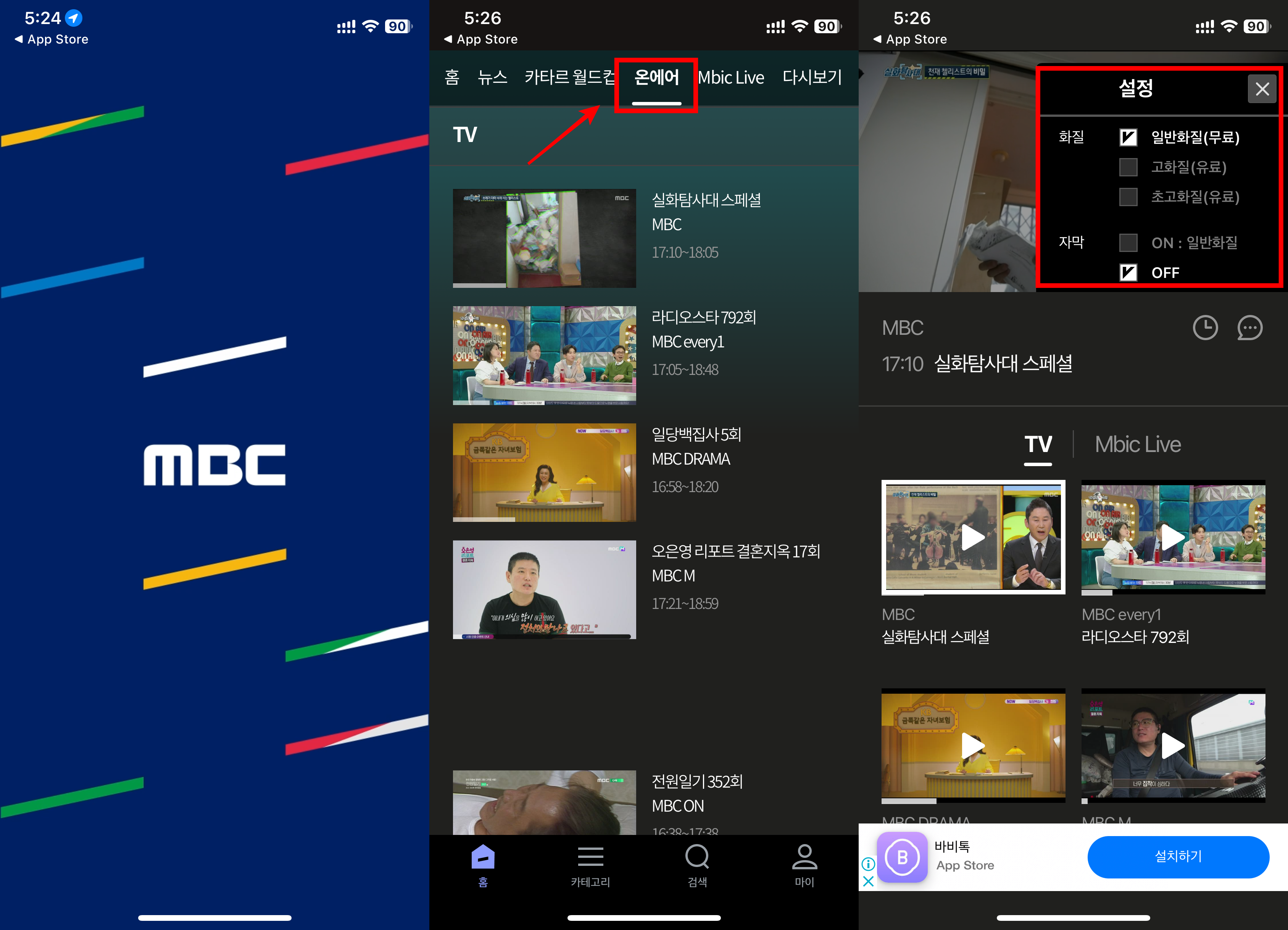 MBC 온에어 무료 시청 (모바일)