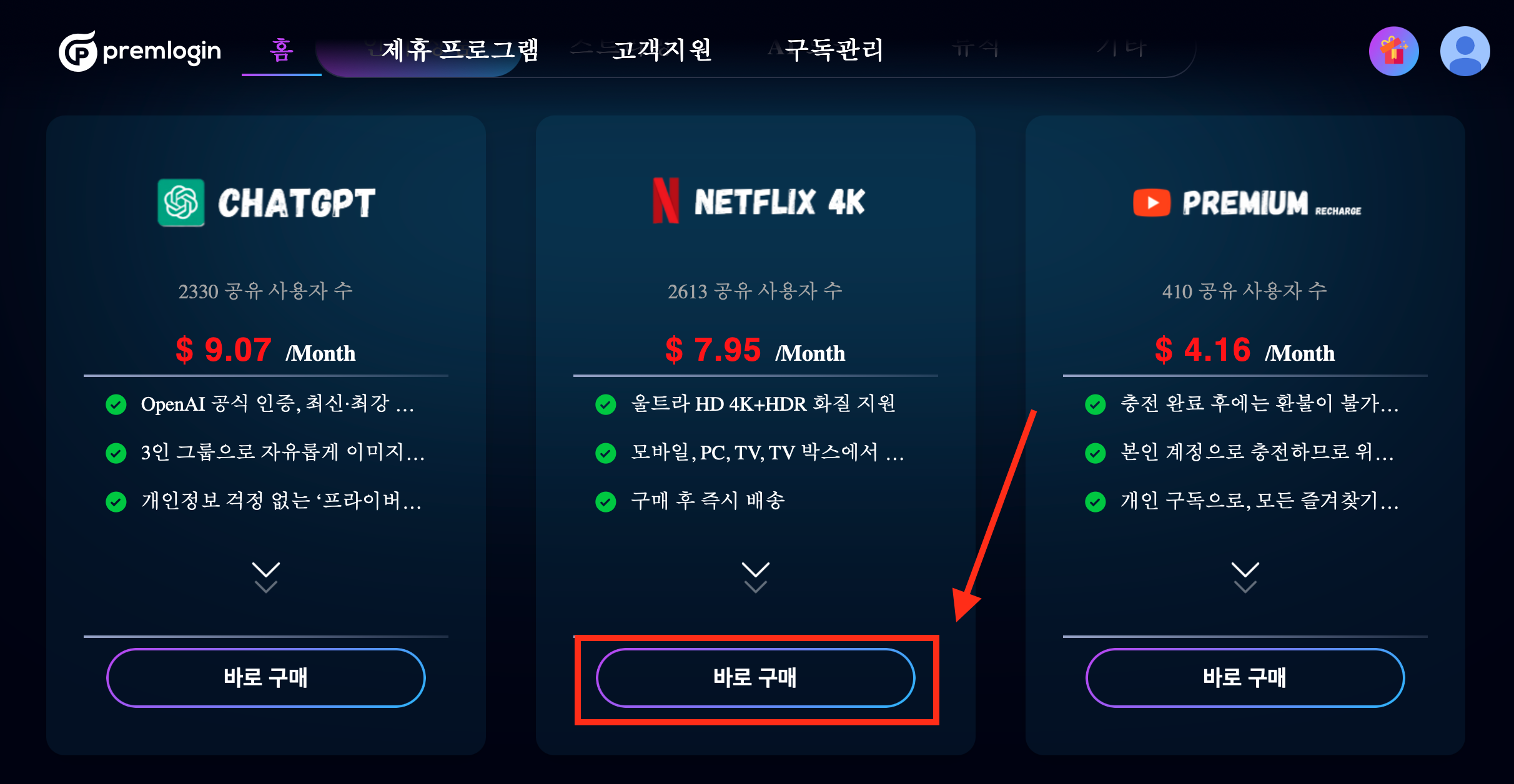 Premlogin 넷플릭스 할인쿠폰 적용방법