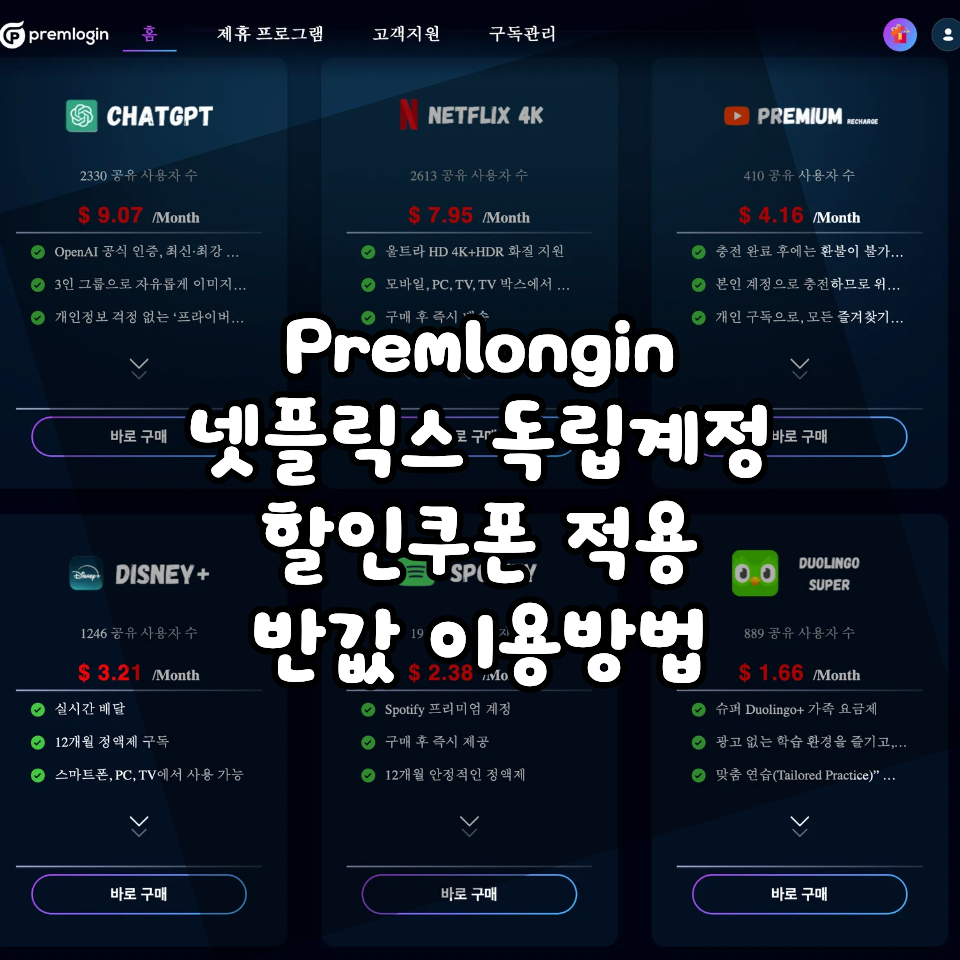 << Premlogin 계정공유 할인 사이트 바로가기 >>