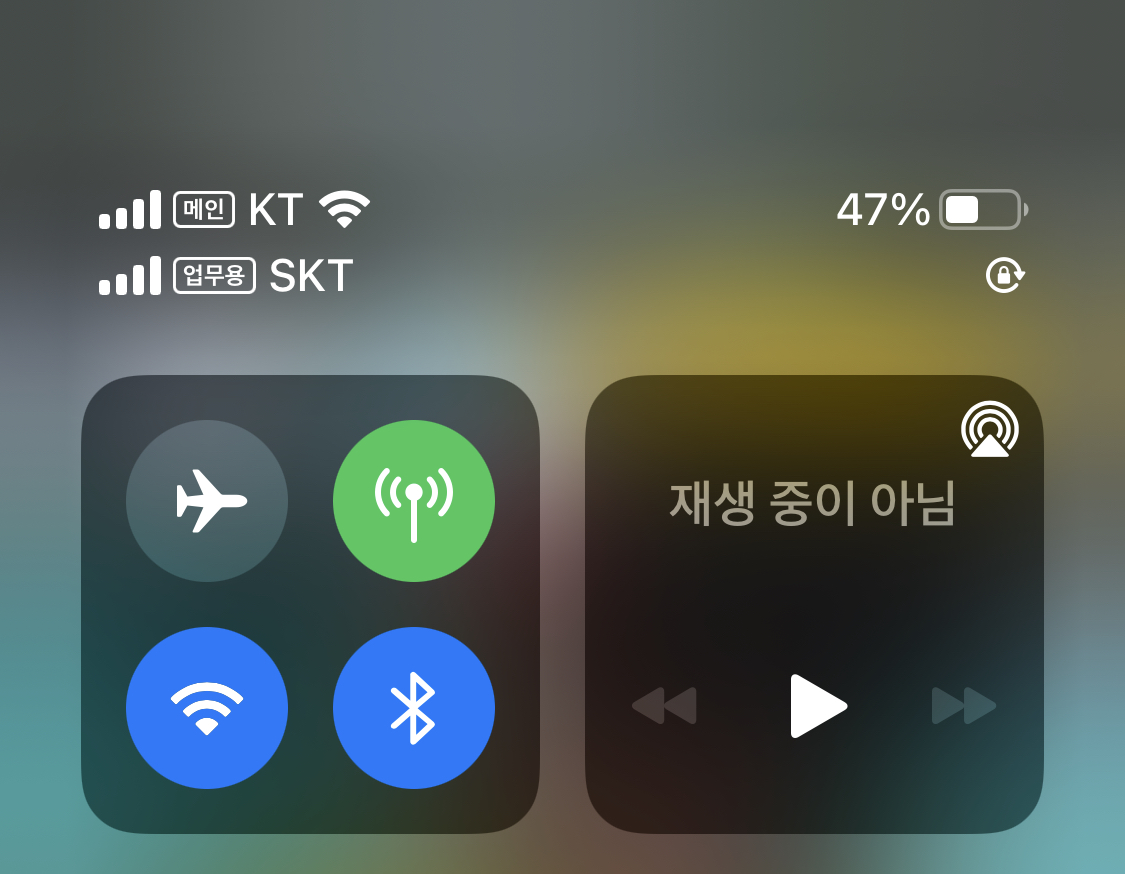 저도 현재 업무용으로 따로 e심으로 월 1900원에 이용을 하고 있습니다. 아래 안테나 사진을 보시면 메인은 KT이지만 업무용 e심 번호는 SKT 인 것을 볼 수 있습니다. 이것은 꼭 같은 통신사를 쓰지 않아도 가능하다는 것입니다. 월 1900원에 e심 요금제를 가입하는 방법은 바로 국내에 처음 e심 서비스를 지원한 티플러스 알뜰폰 요금제를 이용하는 것입니다.