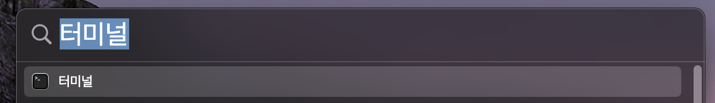 - Command + spacebar 로 Spotlight를 실행 후 터미널을 검색해서 실행합니다.