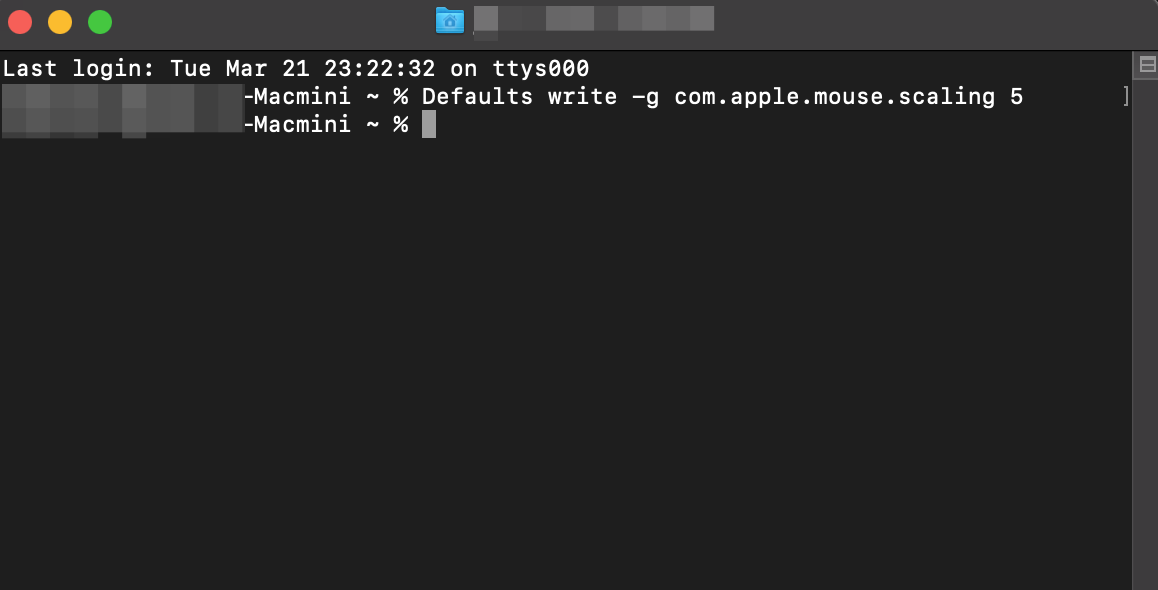 2. 터미널에서 아래 명령어를 이용해서 매직 마우스 속도를 설정합니다.