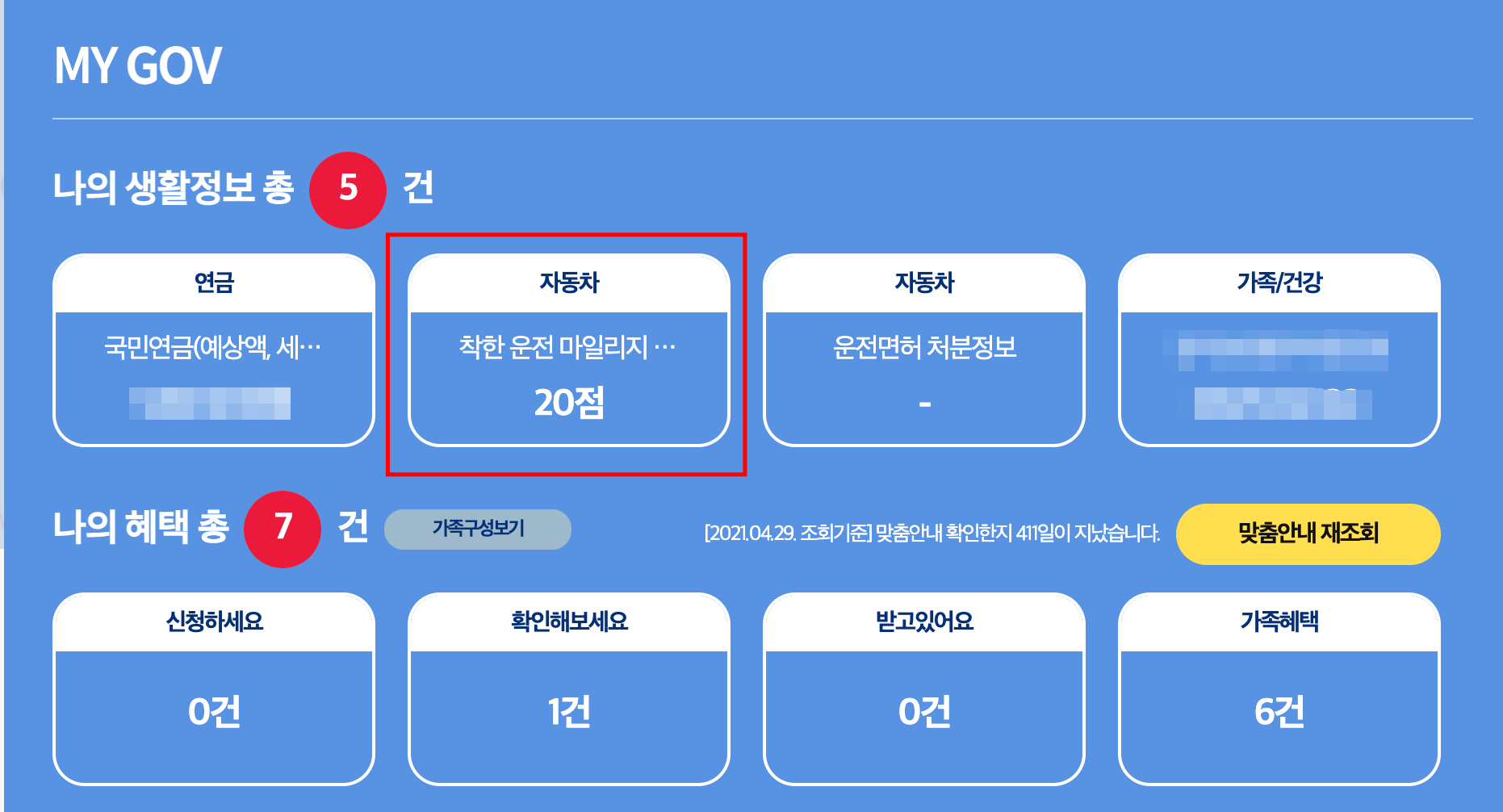 정부24 위 링크에 접속을 하신 후에 로그인을 하시면 간편하게 신청이 가능합니다. 신청시에 무사고 무위반 MY GOV에서 내 점수가 얼마 인지 확인이 가능합니다. 저도 현재 제 점수를 한번 확인해 보았는데요. 저도 매년 해야하는데 중간에 잊어버리고 해서 현재는 20점이 쌓여있고 이번에 다시 신청을 해서 30점 마일리지를 쌓기 위해 조심하고 있습니다.