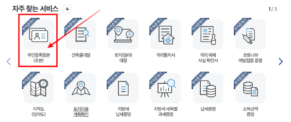 2. 자주 찾는 서비스 : 주민등록등본(초본)